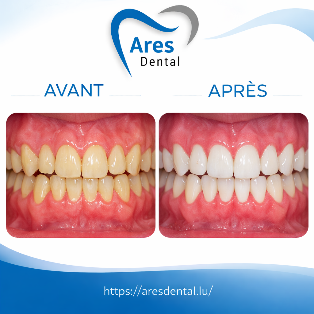 Si vous recherchez le meilleur blanchiment dentaire au Luxembourg, contactez Ares Dental Luxembourg dès aujourd’hui pour planifier votre rendez-vous et découvrir comment retrouver un sourire éclatant en toute sécurité.
